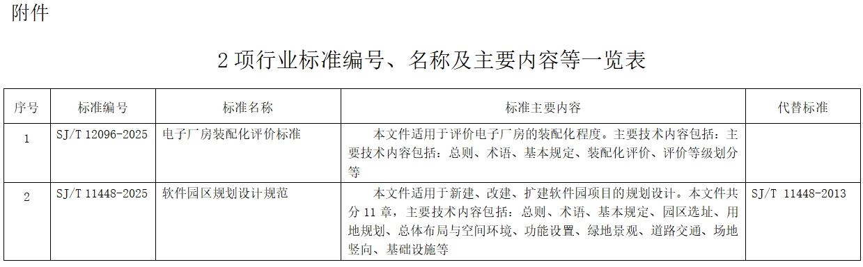 电子行业《电子厂房装配化评价标准》等2项行业标准报批公示